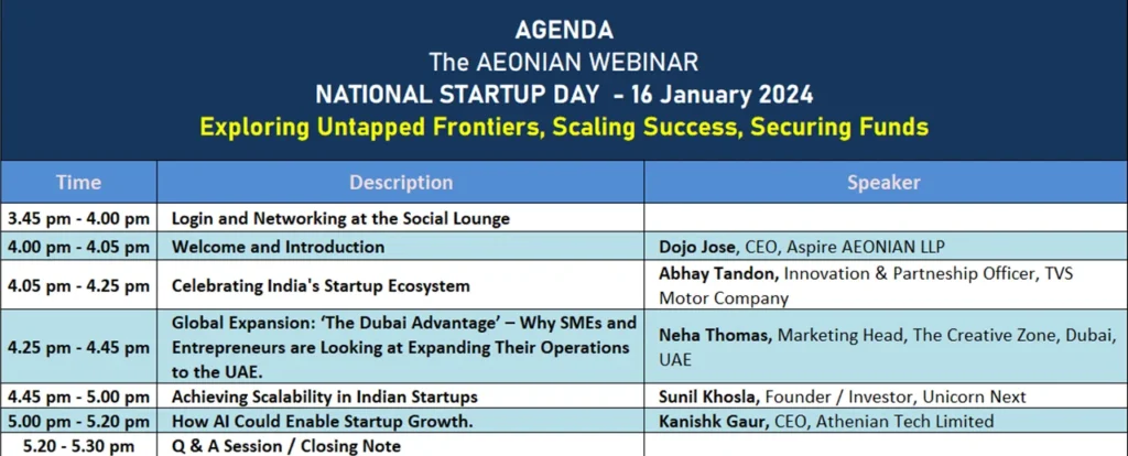 India’s National Startup Day, celebrated annually on January 16th, is a testament to the thriving entrepreneurial spirit in the country. This day not only commemorates the achievements of existing startups but also aims to inspire and guide aspiring entrepreneurs towards building successful, scalable businesses. To mark this occasion, we are delighted to announce a special webinar that brings together industry experts to share insights on crucial aspects of startup success.